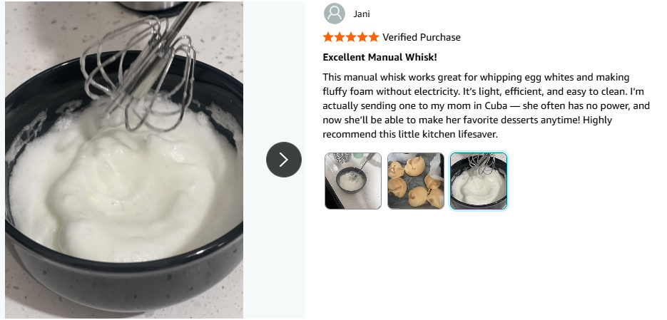 Say goodbye to tired wrists and messy counters. With this semi-automatic whisk, you’ll mix eggs, sauces, and batter 2x faster than traditional whisks—without needing power or batteries.