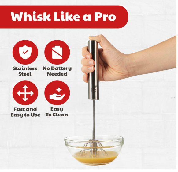 Get your Semi-Automatic Hand Whisk today and make mixing, whipping, and frothing fast, clean, and effortless.